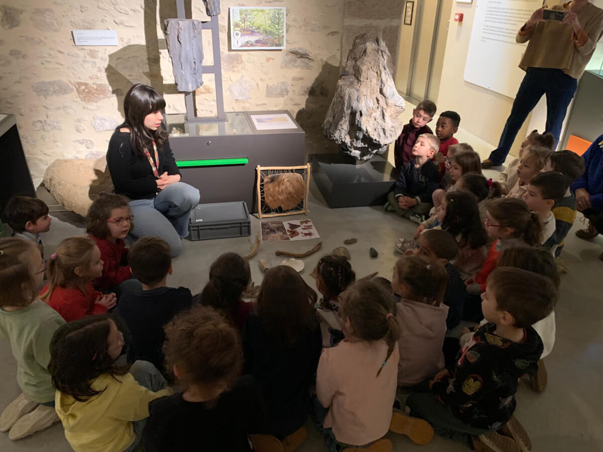 Nous avons touché des objets comme les premiers couteaux fait de bois et de pierre taillée.